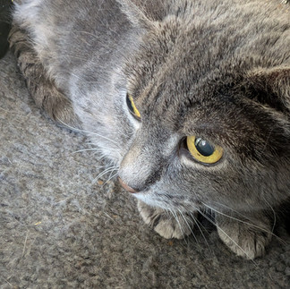So we wait a week for blood work to come back. Dr. B calls and says, "I hate to be the bearer of bad news, but she's diabetic." I laugh and say we kind of figured that would be the case. Her brother has it, so it makes sense it's genetic. Gene and I are not thrilled to be doing more daily meds and testing for financial and time reasons, but we are doing it. Like all our cats, she's getting top-notch care, all the love, and has no idea how much it's costing.